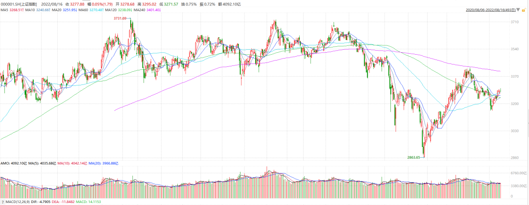恒德市场恐慌指数信号 注解: 低风险:近几个交易日内指数发生大幅下跌概率较小; 中风险:短期内可能有小幅回调波动; 高风险:近期指数有较大概率发生大幅度下跌,谨慎市场系统性风险。 国内市场 指数 收盘 涨跌幅(%) 上证综指 3277.88 0.05 深证成指 12470.1 0.08 沪深300 4177.84 -0.19 创业板指 2731.39 0.47 中证500 6465.19 0.35 万得全A 5299.64 0.25 恒生指数 19830.5 -1.05 A股整体震荡运行,上证指数收盘涨0.05%报3277.88点,深证成指涨0.08%,创业板指涨0.47%,万得双创涨0.42%,万得全A涨0.25%;大市成交1.02万亿元。盘面核心仍为新能源赛道,光伏板块再创新高,风电、养殖、锂电、特高压、地产、海运、储能、汽车及零部件板块造好,稀土、锂矿、软件、CRO、日化、培育钻石板块休整。 周二两市主力净卖出166.81亿元。其中,1882只个股获资金净流入,2875只个股出现资金净流出,主力资金持续净卖出。 港股早盘窄幅震荡,午后受科技股拖累突然快速跳水,恒生指数收跌1.05%报19830.52点,恒生科技指数跌2.03%,恒生国企指数跌1.27%。大市成交986.96亿港元。科技股多数走软,美团放量跌超9%,快手跌超4%。地产、物管股强势,碧桂园服务大涨15%,龙湖集团涨超12%。中国台湾加权指数收盘微涨0.02%报15420.57点。 国务院总理李克强主持召开经济大省政府主要负责人座谈会强调,中国经济6月企稳回升,7月延续恢复发展态势,但仍有小幅波动。势要起而不可落。必须增强紧迫感,巩固经济恢复基础。要深入实施稳经济一揽子政策,合理加大宏观政策力度,推进改革开放,稳就业稳物价,保持经济运行在合理区间,保障基本民生。 国家卫健委等17部门印发《关于进一步完善和落实积极生育支持措施的指导意见》,要求加快建立积极生育支持政策体系,为推动实现适度生育水平、促进人口长期均衡发展提供有力支撑。《意见》完善和落实财政、税收、保险、教育、住房、就业等积极生育支持措施,提出对购买首套自住住房的多子女家庭,有条件城市可给予适当提高住房公积金贷款额度等相关支持政策。加快发展长租房市场,多渠道增加长租房供应,推进租购权利均等。各地可结合实际,进一步研究制定根据养育未成年子女负担情况实施差异化租赁和购买房屋优惠政策。 消息称监管指导为示范房企提供流动性支持,由中债信用对房企发行的中期票据开展“全额无条件不可撤销连带责任担保”,涉旭辉控股集团、碧桂园、龙湖集团、远洋集团、新城控股等示范民营房企。示范房企龙湖集团表示,监管计划给予积极支持,目前正就新的融资计划沟通中。 上市公司重要公告 海外股票市场 指数 收盘 涨跌幅(%) 道琼斯工业指数 34152.01 0.71 纳斯达克指数 13102.5 -0.19 标普500 0.19 日经225 28868.9 -0.01 富时100 7536.06 0.36 德国DAX 13910.12 0.68 国际要闻 美国三大股指收盘涨跌不一,道指涨0.71%报34152.01点,连续五日录得上涨,标普500指数涨0.19%报4305.2点,纳指跌0.19%报13102.55点。沃尔玛涨5.1%,家得宝涨4.02%,领涨道指。万得美国TAMAMA科技指数跌0.1%,特斯拉跌0.89%,脸书跌0.79%。中概股多数下跌,比特矿业跌42.31%,智富跌20.98%。 欧洲三大股指收盘小幅走高,德国DAX指数涨0.68%报13910.12点,法国CAC40指数涨0.34%报6592.58点,英国富时100指数涨0.36%报7536.06点。 美国7月份新屋开工数下降9.6%,至折合年率144.6万套,为2021年2月以来的最低水平,6月份数据修正后为160万套。7月建筑许可则下降1.3%至167.4万。 美国7月工业产出环比升0.6%,制造业产出环比升0.7%,均好于经济学家预期。其中制造业产出为三个月来首次增长。 欧元区8月ZEW经济景气指数录得-54.9,为2011年11月以来新低。德国8月ZEW经济景气指数-55.3,刷新2008年10月以来新低,此前市场预期将持平于-53.8。 欧元区6月季调后贸易帐逆差308亿欧元,预期逆差200亿欧元,前值逆差260亿欧元。 当地时间8月16日,美国总统乔·拜登签署了总价值为7500亿美元的《2022年通胀削减法案》,令该立法正式生效。该立法的内容包括应对气候变化和扩大医疗保健覆盖范围等。白宫表示,在接下来的几周内,拜登将前往全美各地阐明该立法将如何帮助美国人。拜登还将在9月6日举办庆祝该立法颁布的活动。 外汇 名称 报价 涨跌幅(%) 美元指数 -0.05 美元/人民币 6.7919 -2.87 欧元/美元 1.0171 0.09 英镑/美元 1.2100 0.37 美元/日元 134.22 0.68 外汇要闻 商品|期货 品种 收盘 涨跌幅(%) WTI原油 87.130 -2.55 COMEX黄金 1790.4 -0.43 COMEX白银 20.110 -0.80 LME铜 8005.5 0.32 LME铝 2396.5 0.27 商品要闻 数字货币 名称 收盘(USD) 涨跌幅(%) 比特币 -0.43 以太坊 -0.19 瑞波币 0.39040 4.59 恒星币 0.12423 0.25 莱特币 62.4000 2.38 债券利率 名称 收益率(%) 涨跌(BP) 美国10年期国债 -1.00 3个月美元LIBOR 2.9400 3.00 中国10年期国债 2.6400 -1.00 3个月SHIBOR 1.6000 -0.04 DR007 1.3000 -1.00 DR001 1.1347 8.47 同业存单利率:1年 1.8900 -3.00 债券要闻 今日重大财经数据和事件 北京时间 地区 数据和事件 20:30 美国 22:30 美国 当日全球无主要市场休市。 想要了解更多公司讯息,可以点击阅读原文进入我们的官网。4305.20 106.46 24015.8 1893.46 2.8090 美国核心零售销售月率 美国当周EIA原油库存变动